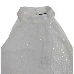 Sparkly White Sequin Halter Top With Button Closure & Open Back Design. L/G NWT.