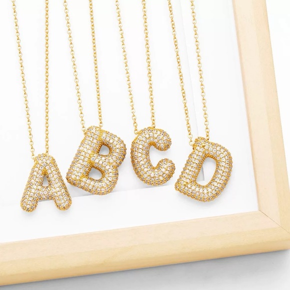 Sparkly bubble shape gold tone Initials letters necklace