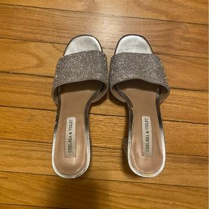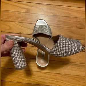 Sparkly chunky open toed heels