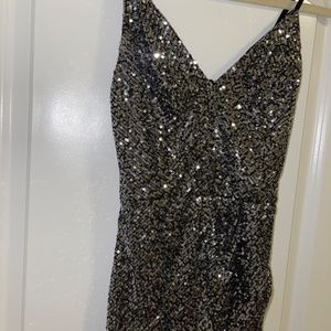 Elegant sparkly black and silver dress Helps give curvy body shape Super cute that can be dressed with heels! Great condition!