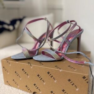 Mix no 6 sparkly sherbet heels with wrap around lace ties! Only worn once for event and didn’t need again but super cute!