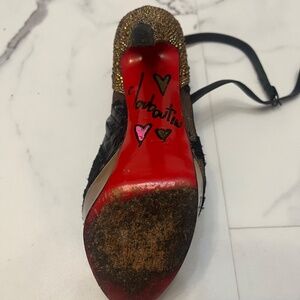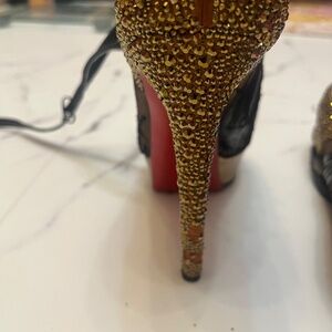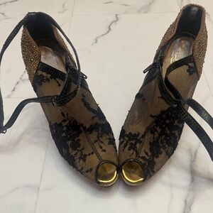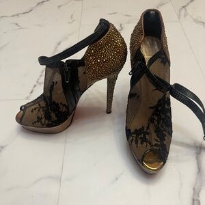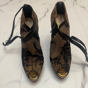 Sparkly, lace gold and black boots. Size 38.5. Does not come with original box or duster. Please see pictures for flaws.