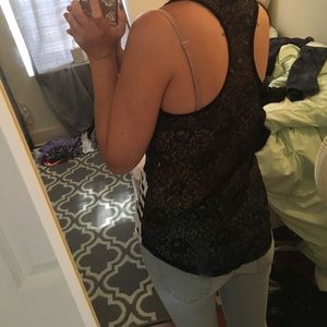 Black and white tribal tank with silver sparkles on the front and a lace see through back