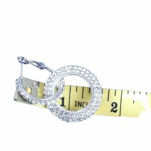 Sparkly Crystal Round Black Gold Tone Double Hoop Drop Earrings. Leverback - Ear Cushions Included. 1.75 inch Length (Top Hoop .75 inch, Bottom Hoop 1 inch).