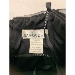 Ladies super cute black and silver mesh tulle and bling strapless dress by masquerade. Excellent condition. Ladies size 20/21. Full zip closure.