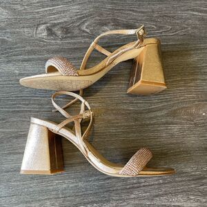 Sparkly strap rose gold heeled sandals