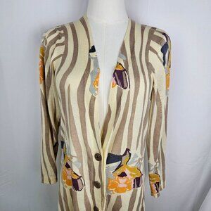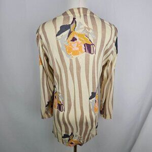 Sparrow Anthropologie Floral Rendering Stripe Medium Cardigan Sweater Beige