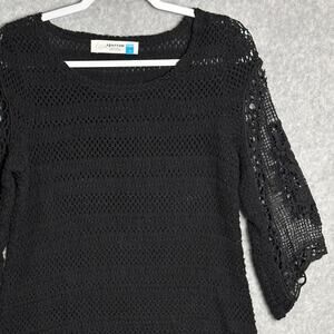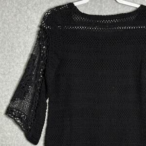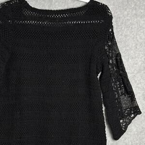 Sparrow Anthropologie Sz S Black Crochet Knit HiLow Sweater Open Knit Sheer Goth