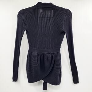 Sparrow Black Tie Waist Long-sleeved Knit Ribbed Cardigan Sweater Women's Sz XS