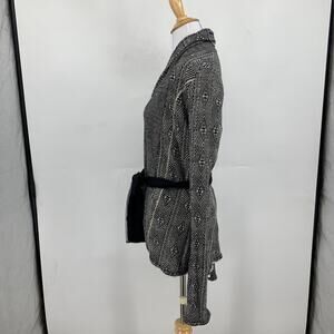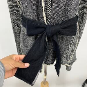 Sparrow Cardigan Womens S Small White Black Wool Cashmere Blend Tie Open Front