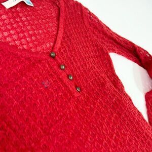 Sparrow Knit Dress Maxi Womens Small Red Long Sleeve Wool Mohair Blend V-Neck