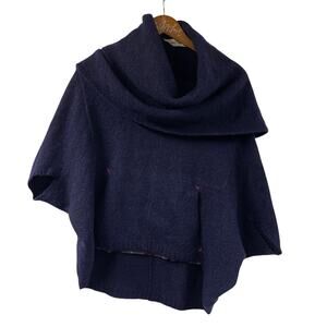Sparrow Poncho Sweater Blue Pullover Wool Blend Anthropologie