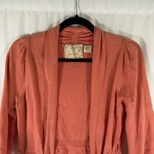 Sparrow Rabbit Hair Cardigan Women's Medium Orange Open Front 3/4 Sleeve