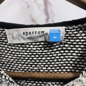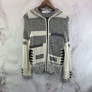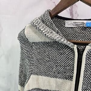 Sparrow Sweater Womens Medium White Black Cardigan Hooded Full Zip