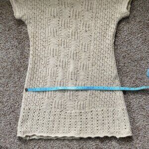 Natural colored lace-knit short sleeve sweater dress. Super soft, 85% wool, 15% linen. Great used condition. Looks super cute over leggings and a long t shirt.
