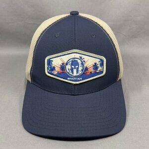 Pre-loved men's Spartan Snapback Hat Navy OC Outdoor Cap Trucker Mesh Patch Dad Adjustable Adult