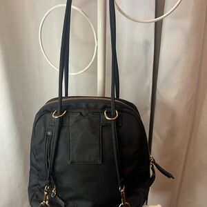 Whether on your way to work or traveling, you can carry your devices and everyday essentials in this hands-free convertible nylon backpack that transforms into a tote for a simple and sophisticated look.