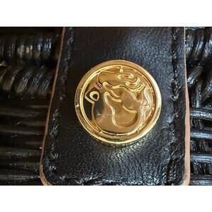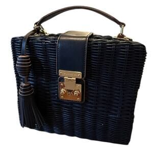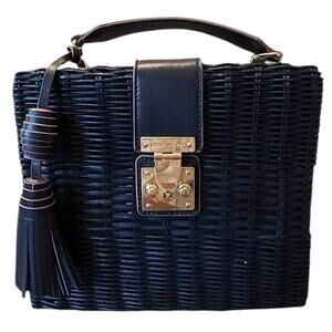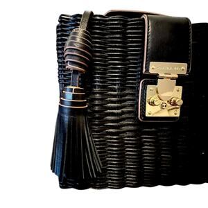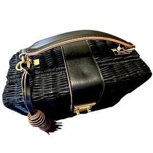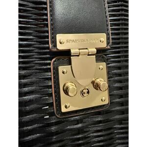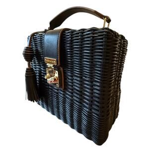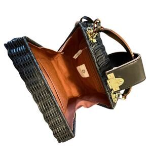 Spartina 449 Black Rattan Box Bag Leather Trim Gold Hardware Top Handle