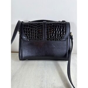 Spartina 449 Black Satchel Crossbody Bag Faux Crocodile Leather