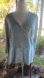 Mint or seafoam green with blue undertones velour wrap front top. Surplice bodice. 3/4 length sleeves. Peplum hem. Size extra large. Good pre-owned condition.