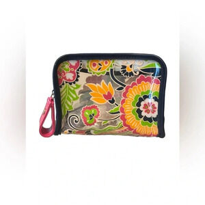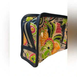 Spartina 449 Clear Colorful Floral Cosmetic Makeup Kit Leather Strap Zipper