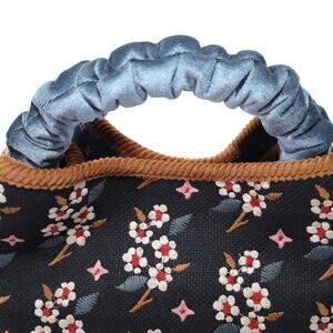 A floral dream for parties and more, Introducing the Embroidered Linen Top Handle Bucket Bag from Spartina 449. This go-to companion can be carried as a crossbody with its Napa leather strap or remove the strap and carry by its velvet handle!