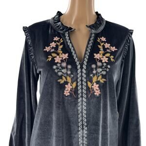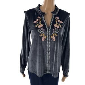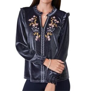 Spartina 449 Deep Slate Gray Velvet Embroidered Malicha Blouse
