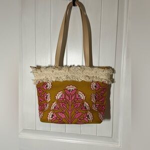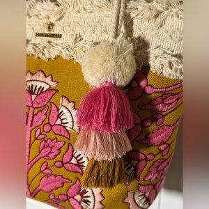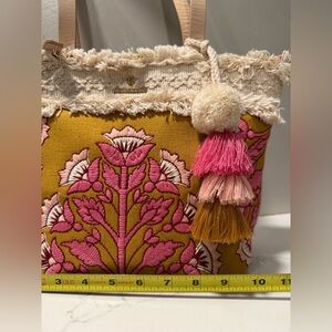 Spartina 449 Embroidered Fringe Pom Pom Tote