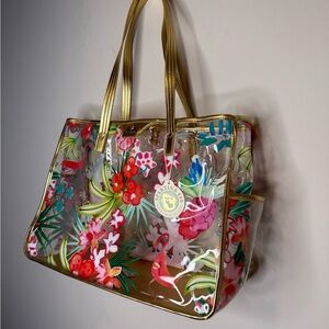 Spartina 449 Flamingo Floral Retreat Clear Beach Tote