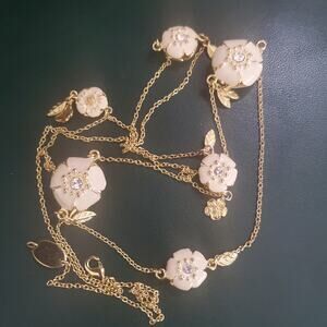 Spartina 449 necklace has three dimensional cream colored enamel flowers with rhinestone centers. 39 inches long with a lobster clasp. Excellent condition. Comes in a Spartina Mermaid pouch.