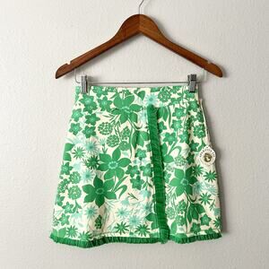 Spartina 449 Fringe Faux Wrap Skort Green Wildflowers Women’s Size XS NEW!