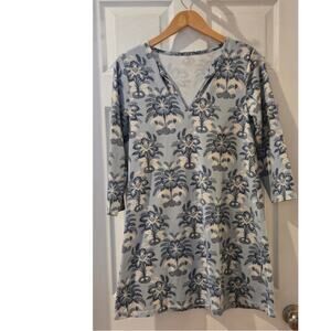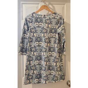 Spartina 449 Jillian Split Neck Dress Palms Blue Small Peruvian Cotton A-Line