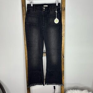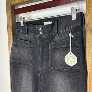 Experience the perfect blend of style and comfort with Spartina 449's black flare wide leg jeans. Crafted from high-quality denim, these jeans feature a flattering wide leg silhouette that adds a touch of elegance to any outfit. The subtle tonal variations in the black fabric give them a unique, lived-in look, making them a versatile addition to your wardrobe.