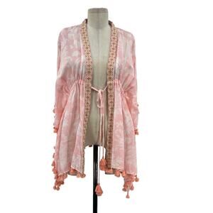 Spartina 449 Old Field Beach Swim Cover Up Tassel Linen Blend Pink One Size