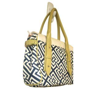 Spartina 449 Purse Leather & Natural Linen Haig Point Fold-Over Shoulder Satchel