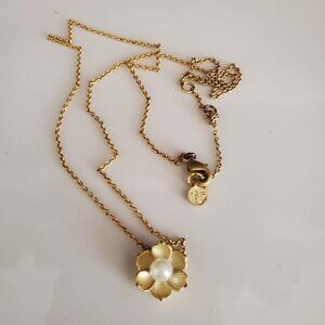 Spartina 449 Magnolia necklace has a matte gold plate finish, flower charm with a faux pearl center. Chain is 18 inches long with a lobster clasp.
