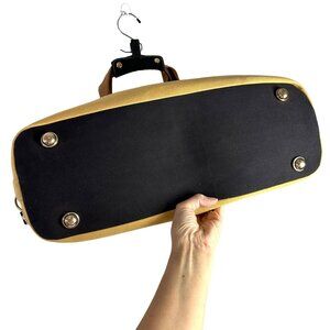 Very Good Pre-owned Condition with wear to metal feet and slightly rough edge coat on leather zipper pulls, marks (with lightened area from soap) on beige band near base, occasional marks and slight fraying on side trim see 17th photo).