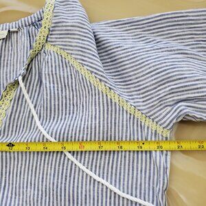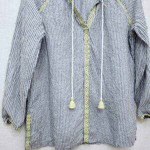 Spartina 449 Striped V-Neck Linen Tassel Blouse With Yellow Accents Size Medium
