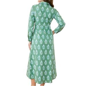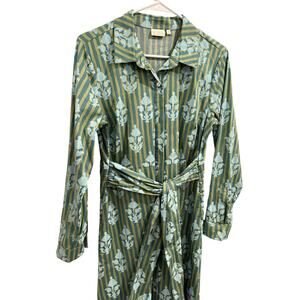 Spartina 449 Sz M Marianne Hamilton Motif Full Button Front Tie Waist MIDI Dress