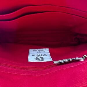 Preloved but appears to never been used. Please see pictures for condition. An adjustable faux leather crossbody strap is fastened securely with golden hardware to a coated, textured vinyl exterior. A golden Spartina logo adorns the front side. The top zips closed and there is a handy back exterior zip pocket. Inside there are two slip and one zip pocket housed in a canvas lining.