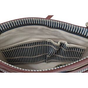 Spartina 449 Tidaholm Crossbody Bag Striped Navy Natural Linen Leather Trim Gold