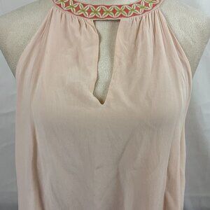 Spartina 449 Top L Light Peach Embroidered Neckline Tie Detail Sleeveless