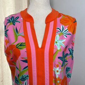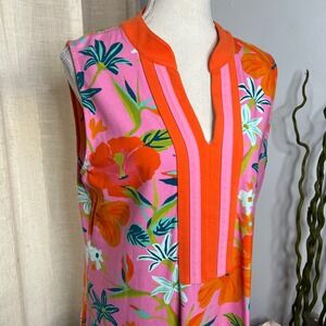 Spartina 449 Tunic Dress Sleeveless Tropical Floral Pink Stretch Women's Size XL
