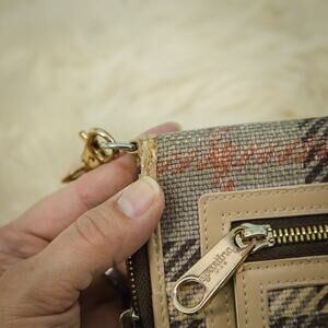 Spartina 449 Wymberly Linen Leather Plaid Zip Top Removable Strap Wristlet Clutch Wallet Purse Bag