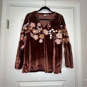 Spartina 449 Genevieve Embroidered Velvet Top Lucas Theatre Shirt Top
