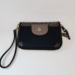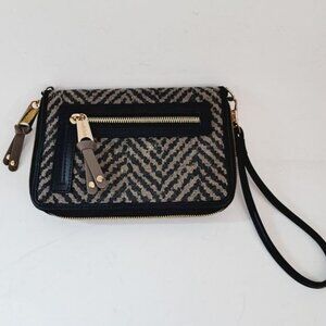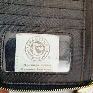 Spartina 499 Moonglow Leather & Linen Crossbody Clutch Black & Taupe