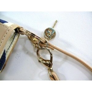 Spartina woven cream Canvas Wristlet flap Wallet leather trim ID window