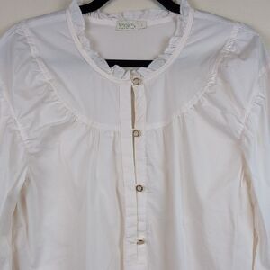 Spartina 449 Cream Elise Stretch Popover Blouse Top Ruffle Neck Size L