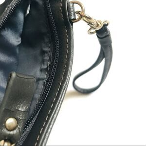 Features zippered pocket, outside ID slot, outside snapped pocket, detachable wrist strap