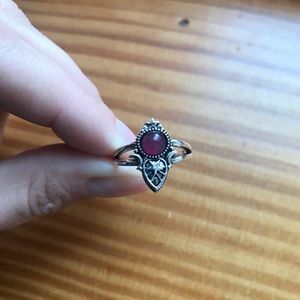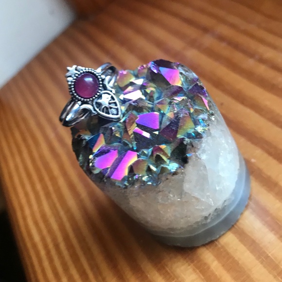 Dark pink magenta stone lays on this stunning delicate silver stars and moon ring